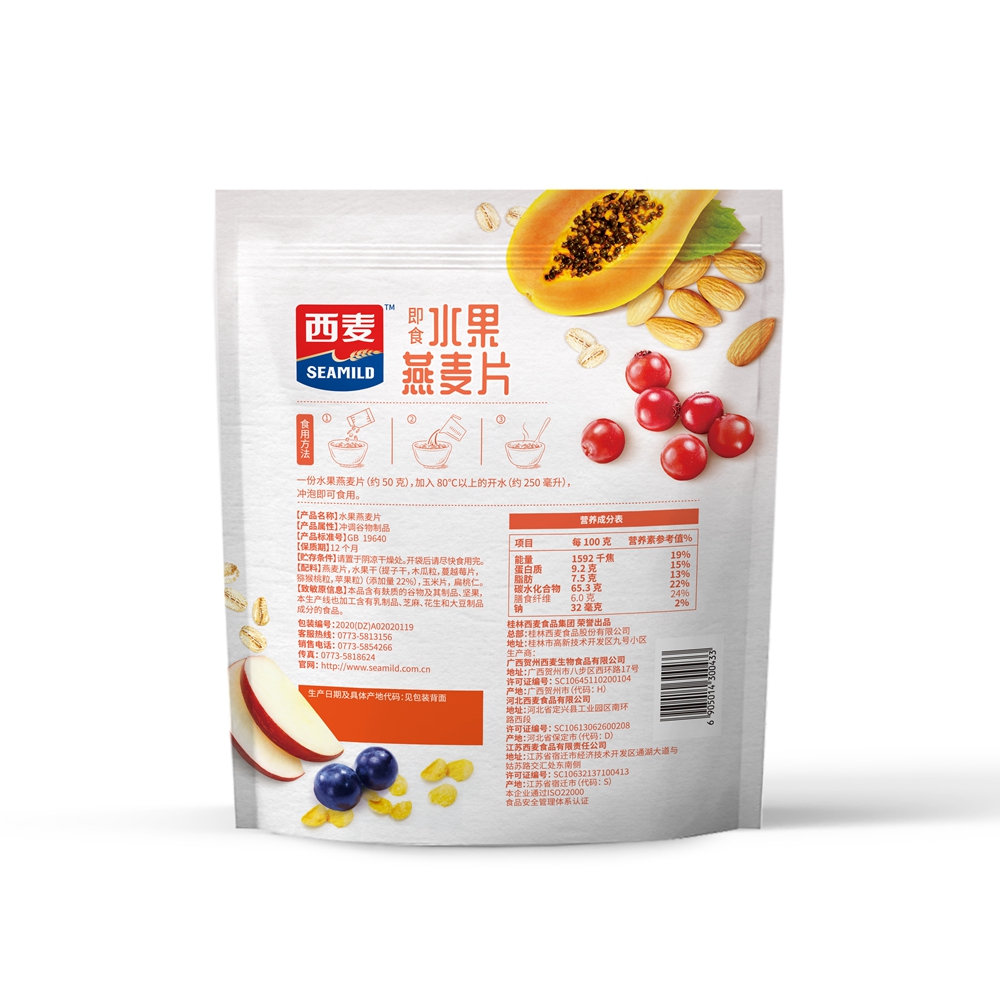 Introduction: Sweet and sour fruit grains + nutritious oatmeal Oatmeal is combined with dried raisins, papaya grains, cranberry slices, kiwi fruit grains, apple grains, corn flakes, almonds, grains and fruits in a scientific proportion, which is nutritious and delicious.